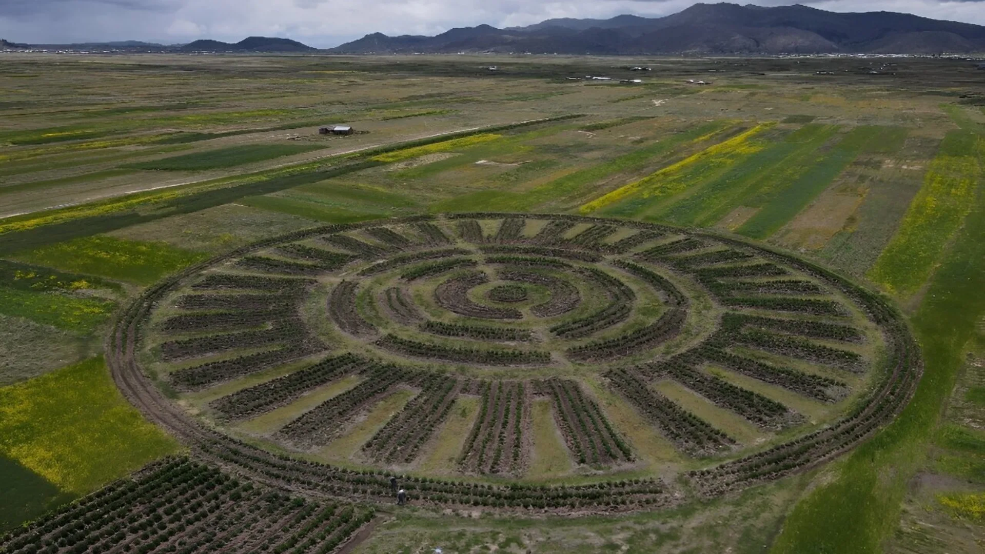 It’s an ancient Andean farming method using raised beds surrounded by water channels that protect crops from frost and improve growing conditions.