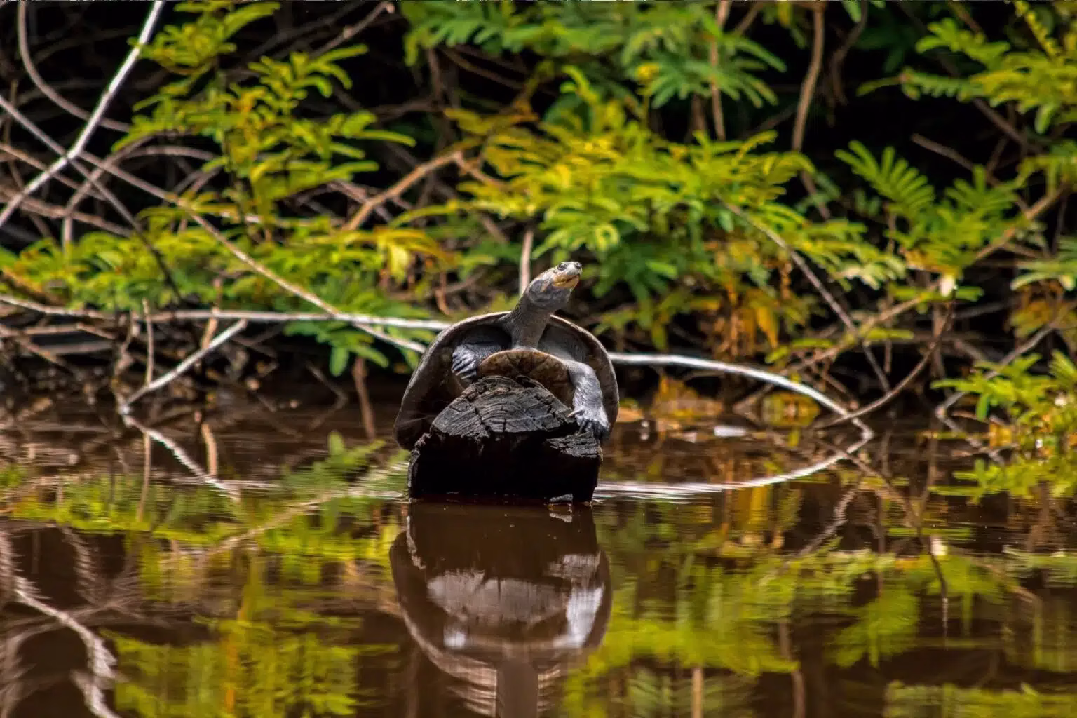 Entre las especies más destacadas están los delfines rosados, osos perezosos, monos, guacamayos, caimanes y el gigantesco paiche, símbolo de la Amazonía peruana.