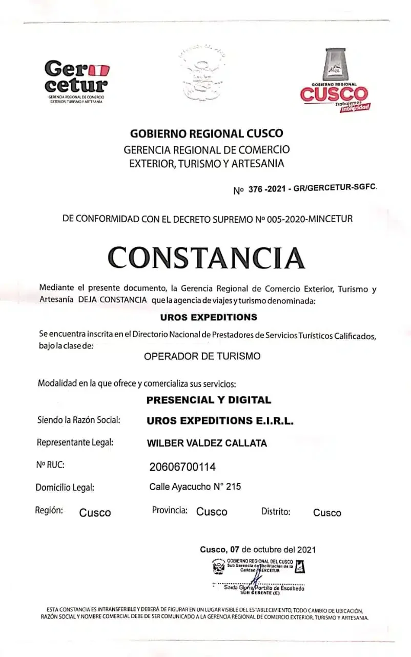 Uros Expeditions is a Peruvian travel company with over 5 years of experience, offering safe, authentic, and expertly guided adventures. We specialize in iconic routes like the Inca Trail to Machu Picchu and craft customized tours ranging from 4 to 10 days. With all required permits and a deep passion for Peru’s culture and landscapes, we’re here to make your journey truly unforgettable.